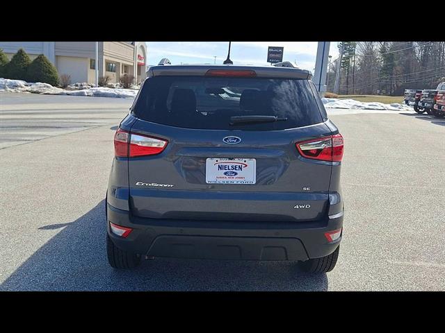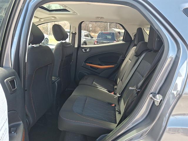 Discover the versatility of the 2022 Ford EcoSport SE AWD in sleek gray. This capable crossover comes equipped with all-wheel drive, a powerful 2.0L I4 engine, and a 6-speed shiftable automatic transmission-perfect for any road conditions. Stay connected and entertained with an 8-inch touchscreen, SYNC infotainment, Apple CarPlay, Android Auto, Bluetooth, and FordPass Connect with Wi-Fi hotspot capability. Enjoy the comfort of heated front seats, automatic climate control, leather-wrapped steering wheel, and a power moonroof. Safety is top-notch with rearview camera, rear parking sensors, blind spot monitoring, front and side curtain airbags, and Ford's AdvanceTrac with Roll Stability Control. Practical features like split-folding rear seats, ample cargo storage, and proximity entry make this EcoSport perfect for daily commutes or weekend adventures. Experience the ideal balance of style, technology, and capability-schedule your test drive today!