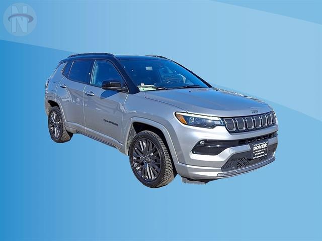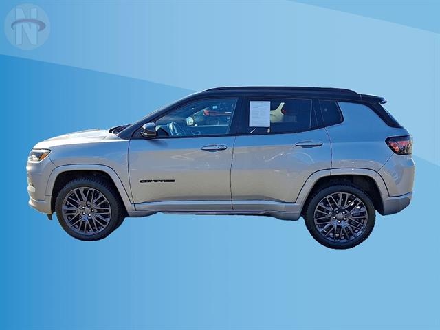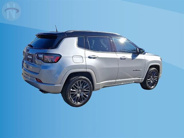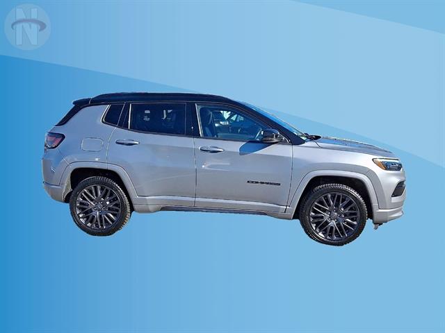 Experience comfort and capability with this Silver 2022 Jeep Compass High Altitude 4x4 SUV. Equipped with a Tigershark 2.4L I4 engine and 9-speed automatic transmission, this Compass delivers smooth performance on and off the road. Enjoy advanced safety with features like front automatic emergency braking, pedestrian detection, lane keeping assist, rear cross traffic alert, and blind spot monitoring. Stay connected on every journey thanks to wireless Apple CarPlay and Android Auto, Uconnect infotainment on a 10.1-inch touchscreen, Amazon Alexa integration, SiriusXM, and onboard Wi-Fi hotspot. Premium touches include leather-trimmed bucket seats, heated front seats and steering wheel, a panoramic power moonroof, adaptive cruise control, and a customizable 10.25-inch digital instrument cluster. Convenience abounds with remote start, power driver seat with lumbar support, auto-dimming rearview mirror, rain-sensing wipers, and a hands-free phone system. This Compass combines luxury, technology, and Jeep's legendary 4x4 capability, making it the ideal SUV for drivers who want style, safety, and versatility.