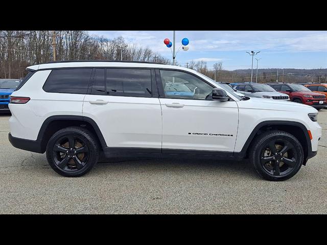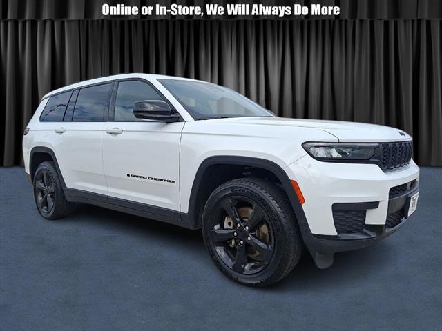 Experience adventure and comfort in this 2023 Jeep Grand Cherokee L Altitude 4x4 SUV. Its striking white exterior is matched with a refined interior featuring Capri leatherette/suede seats and a customizable 10.25-inch instrument cluster. Enjoy the confidence of advanced safety features like Front and Rear Automatic Emergency Braking, Lane Keeping Assist, Blind Spot Safety, and Rear Cross Traffic Alert. Stay connected on the go with Uconnect infotainment, Apple CarPlay, Android Auto, Wi-Fi hotspot, and multiple USB/USB-C outlets for all rows. The spacious three-row seating, power sunroof, power-operated rear liftgate, and adaptive cruise control make every trip enjoyable. Convenience is at your fingertips with remote engine start, heated steering wheel, heated front seats, and automatic climate control for both front and rear. Powered by a strong Pentastar 3.6L V6 engine and 8-speed automatic transmission, this Grand Cherokee L is ready for any journey. Visit us for a test drive and discover why this SUV is the perfect blend of capability, style, and innovation.