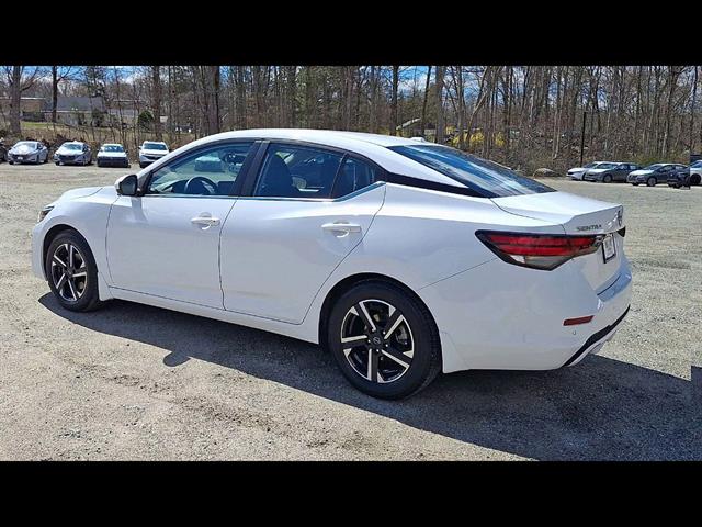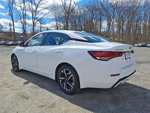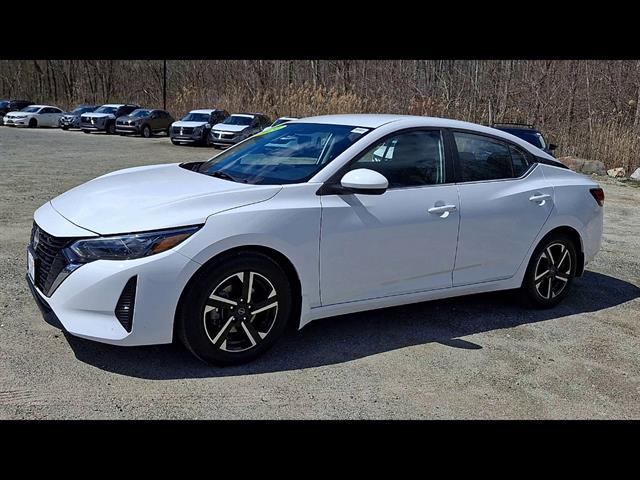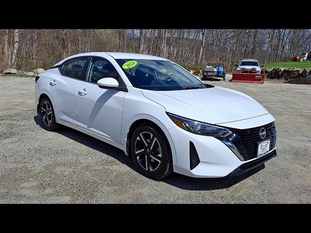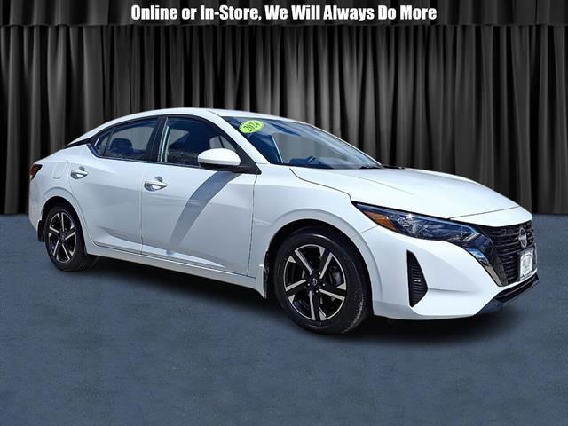 Drive in style with this White 2024 Nissan Sentra SV 4dr Sedan. Powered by a fuel-efficient 2.0L I4 engine paired with Nissan's Xtronic CVT and FWD, this sedan delivers a smooth and responsive ride. Enjoy the comfort of premium cloth upholstery, leather-wrapped steering wheel, and an 8-inch touchscreen with Apple CarPlay, Android Auto, Bluetooth, and NissanConnect for seamless connectivity. Stay safe with advanced features like Front and Rear Automatic Emergency Braking, Pedestrian Detection, Rear Cross Traffic Alert, Blind Spot Warning, Lane Deviation Sensors, and Adaptive Cruise Control. Convenience features include push-button start, auto on/off headlights, remote proximity entry, and a split-folding rear seat for extra cargo space. The Sentra SV also comes with aluminum alloy wheels, a rearview camera, automatic climate control, and SiriusXM satellite radio. Perfect for daily commutes or weekend getaways, this Sentra blends reliability, safety, and modern tech.