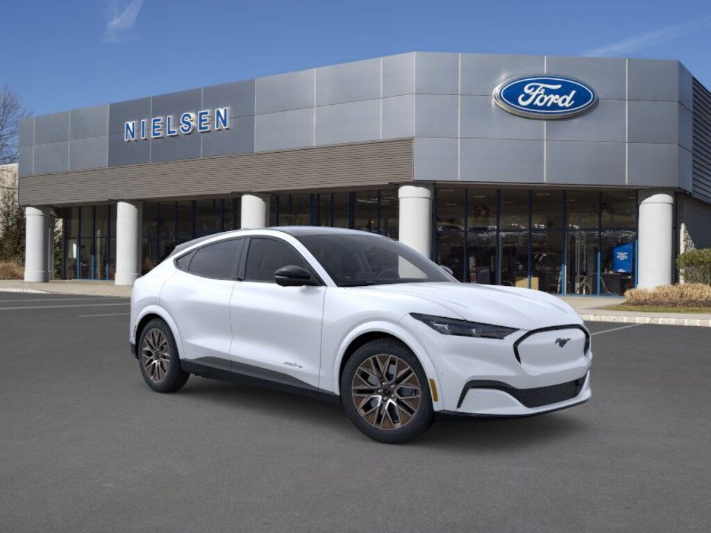 Experience the future of driving with this new 2025 Ford Mustang Mach-E Premium AWD, finished in stunning white with only 1 mile on the odometer. Powered by a robust 346hp electric motor and 88kWh usable battery, you'll enjoy exhilarating performance and up to 150kW DC fast charging for ultimate convenience. The Premium trim is loaded: enjoy a panoramic fixed-glass roof, heated and ventilated ActiveX leatherette seats, B&O Sound System by Bang & Olufsen, SYNC 4A with a 15.5-inch touchscreen, Apple CarPlay/Android Auto, and wireless device charging. Advanced safety features include Ford Co-Pilot360 with BLIS (Blind Spot Information System), lane keeping, adaptive cruise control, 360-degree camera, and automatic emergency braking. With all-wheel drive, selectable drive modes, and 19-inch alloy wheels, every trip is both dynamic and secure. The Mach-E's sleek design is complemented by a power liftgate, deep-tinted glass, and bronze-accented wheels. Covered by Ford's comprehensive warranty, this Mustang Mach-E Premium is ready for your next adventure. Contact us today to schedule your test drive!