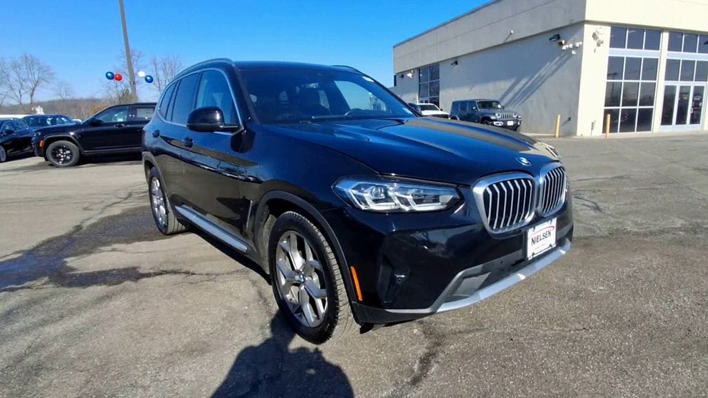 Nielsen Dodge of Morristown is proud to offer this stunning-looking 2022 BMW X3 a positively beautiful-looking SUV with the following Features: Connected Package Pro, Convenience Package (Lumbar Support and Panoramic Moonroof), 8-Speed Automatic Sport, 12 Speakers, 3.385 Axle Ratio, 4-Wheel Disc Brakes, ABS brakes, Air Conditioning, Alloy wheels, AM/FM Radio, AM/FM radio: SiriusXM with 360L, Apple CarPlay & Android Auto Compatibility, Auto High-beam Headlights, Auto-dimming door mirrors, Auto-dimming Rear-View mirror, Automatic temperature control, BMW Assist eCall, BMW TeleServices, Brake assist, Bumpers: body-color, Comfort Access Keyless Entry, ConnectedDrive Services, Delay-off headlights, Driver door bin, Driver vanity mirror, Dual front impact airbags, Dual front side impact airbags, Electronic Stability Control, Emergency communication system: BMW Assist eCall, Enhanced Bluetooth, Exterior Parking Camera Rear, Four wheel independent suspension, Front anti-roll bar, Front Bucket Seats, Front Center Armrest, Front dual zone A/C, Front reading lights, Fully automatic headlights, Garage door transmitter, Genuine wood dashboard insert, Genuine wood door panel insert, Heated door mirrors, Heated Front Seats, Heated Steering Wheel, Hi-Fi Sound System, Illuminated entry, Knee airbag, Low tire pressure warning, Memory seat, Navigation, Navigation System, Occupant sensing airbag, Outside temperature display, Overhead airbag, Panic alarm, Passenger door bin, Passenger vanity mirror, Perforated SensaTec Upholstery, Power door mirrors, Power driver seat, Power Front Seats, Power Liftgate, Power passenger seat, Power steering, Power windows, Radio data system, Rain sensing wipers, Rear air conditioning, Rear anti-roll bar, Rear reading lights, Rear seat center armrest, Rear window defroster, Rear window wiper, Remote keyless entry, Roof rack: rails only, Security system, SiriusXM w/360L, Speed control, Speed-sensing steering, Speed-Sensitive Wipers, Split folding rear seat, Spoiler, Sport Seats, Sport steering wheel, Steering wheel mounted audio controls, Tachometer, Telescoping steering wheel, Tilt steering wheel, Traction control, Trip computer, Turn signal indicator mirrors, Variably intermittent wipers, Wheels: 19" x 7.5" Y-Spoke (Style 693), and WiFi Hotspot. 21/28 City/Highway MPG