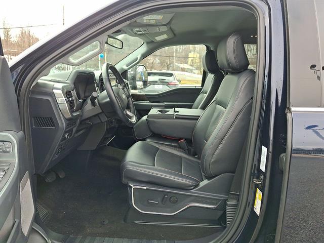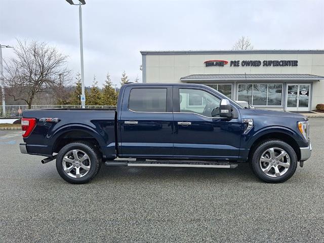 Experience power, technology, and luxury in this Dark Blue 2022 Ford F-150 Lariat 4x4 SuperCrew. Equipped with the EcoBoost 3.5L Twin Turbo V6 engine and 10-speed shiftable automatic transmission, this truck is ready for both work and play. Enjoy advanced features like the Lariat Chrome Appearance Package, 360 Degree Camera, Trailer Tow Package with integrated trailer brake controller, Power Telescoping/Power Folding Trailer Tow Mirrors, and a Bed Utility Package. Inside, you'll find leather-trimmed heated and ventilated seats, a 12-inch customizable touchscreen with SYNC infotainment, Wireless Android Auto & Apple CarPlay, B&O Sound System by Bang & Olufsen, and FordPass Connect for smart device integration. Safety is top-tier with lane keeping assist, front/rear automatic emergency braking, blind spot monitoring with trailer coverage, rear cross traffic alert, and pedestrian detection. Additional highlights include power open/locking tailgate, LED headlights and bed lighting, remote start, adjustable pedals, and 20-inch chrome wheels. This F-150 Lariat delivers the perfect combination of strength, style, and innovation-ready for your next adventure!