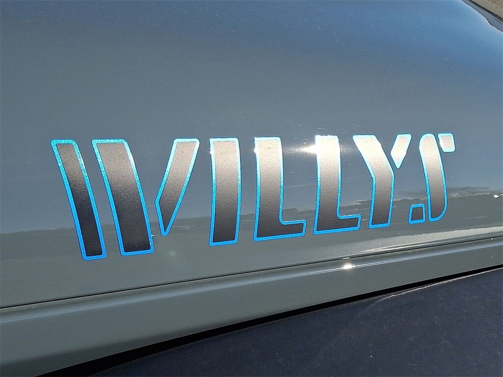 2.0L I4 DOHC, 4-Wheel Drive Swing Gate Decal, 4.10 Rear Axle Ratio, 7 & 4 Pin Wiring Harness, 97 MPH Vehicle Max Speed Calibration, Auxiliary Switches, Black Grille, Class II Receiver Hitch, Conventional Differential Front Axle, E-Locker Rear Axle, Front LED Fog Lamps, LED Premium Reflector Headlamps, Molded in Color Rubicon Highline Flare, MOPAR All-Weather Floor Mats, Off-Road Plus Mode, Quick Order Package 29W Willys 4xe, Wheels: 17" x 7.5" Painted Black, Willy's Suspension, Willys 4xe Hood Decal.