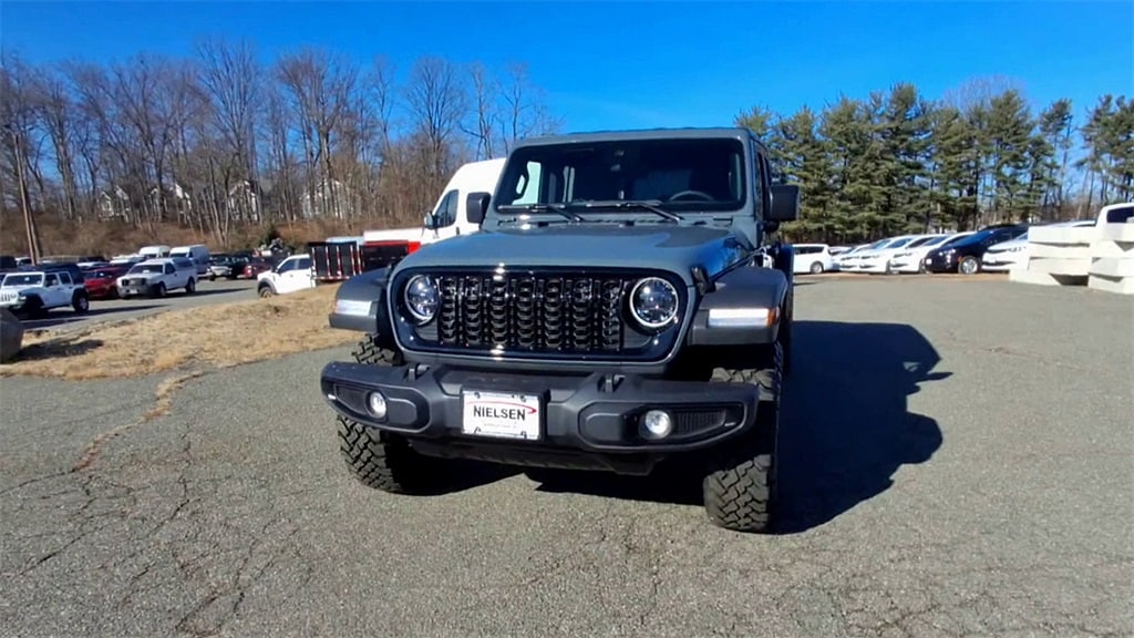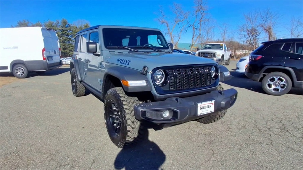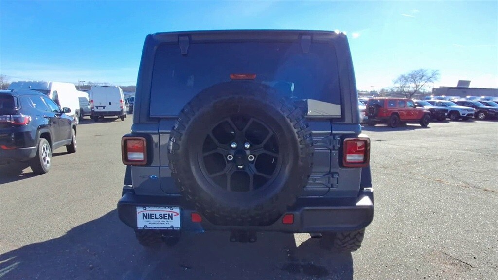 Nielsen Dodge of Morristown is proud to offer this good-looking and fun 2025 Jeep Wrangler a positively great SUV with the following Features: Quick Order Package 29W Willys 4xe (4-Wheel Drive Swing Gate Decal, 4.10 Rear Axle Ratio, 7 & 4 Pin Wiring Harness, 97 MPH Vehicle Max Speed Calibration, Auxiliary Switches, Black Grille, Class II Receiver Hitch, Conventional Differential Front Axle, E-Locker Rear Axle, Front LED Fog Lamps, LED Premium Reflector Headlamps, Molded in Color Rubicon Highline Flare, MOPAR All-Weather Floor Mats, Off-Road Plus Mode, Wheels: 17" x 7.5" Painted Black, Willy's Suspension, and Willys 4xe Hood Decal), 2.0L I4 DOHC, 4-Wheel Disc Brakes, 8 Speakers, ABS brakes, Air Conditioning, Alloy wheels, AM/FM radio: SiriusXM, Apple CarPlay/Android Auto, Black 3-Piece Hard Top, Brake assist, Cloth Low-Back Bucket Seats, Compass, Delay-off headlights, Driver door bin, Driver vanity mirror, Dual front impact airbags, Dual front side impact airbags, Electronic Stability Control, Freedom Panel Storage Bag, Front anti-roll bar, Front Bucket Seats, Front Center Armrest w/Storage, Front fog lights, Front License Plate Bracket (DISC), Front reading lights, Fully automatic headlights, Heated door mirrors, Illuminated entry, Integrated roll-over protection, Low tire pressure warning, Occupant sensing airbag, Outside temperature display, Overhead airbag, Panic alarm, ParkView Rear Back-Up Camera, Passenger door bin, Passenger vanity mirror, Power door mirrors, Power steering, Power windows, Radio data system, Radio: Uconnect 5 w/12.3" Display, Rear anti-roll bar, Rear reading lights, Rear Window Defroster, Rear Window Wiper/Washer, Remote keyless entry, Security system, Speed control, Split folding rear seat, Sport Suspension, Steering wheel mounted audio controls, Tachometer, Telescoping steering wheel, Tilt steering wheel, Traction control, Trip computer, Variably intermittent wipers, Voltmeter, and Wheels: 20" x 8" Machined/Painted Gray.