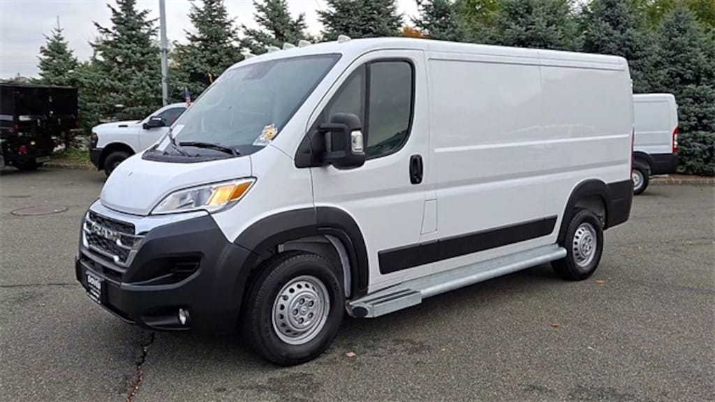 Quick Order Package 22B Tradesman w/Pass Seat (4-Way Manual Adjust Front Passenger Seat and Passenger Bucket Seat), 4 Speakers, 4-Wheel Disc Brakes, 4.08 Axle Ratio, 4G LTE Wi-Fi Hotspot, ABS brakes, Adaptive Cruise Control w/Stop & Go, Air Conditioning, AM/FM radio, Apple CarPlay, Apple CarPlay/Android Auto, Black/Gray Seats, Bodyside moldings, Brake assist, Cloth Bucket Seats, Connectivity - US/Canada, Deep Tint Sunscreen Glass, Driver door bin, Driver Seat Armrest, Driver's Seat Mounted Armrest, Electronic Stability Control, Exterior Mirrors w/Supplemental Signals, For Details, Visit DriveUconnect.com, For More Info, Call 800-643-2112, Front anti-roll bar, Front Bucket Seats, Front License Plate Bracket, Front reading lights, Front wheel independent suspension, Global Telematics Box Module (TBM), Google Android Auto, GPS Antenna Input, Heavy Duty Suspension, Illuminated entry, Low tire pressure warning, Manufacturer's Statement of Origin, Outside temperature display, Overhead airbag, Overhead console, ParkView Rear Back-Up Camera, Passenger door bin, Power steering, Power windows, Radio: Uconnect 5 w/7" Display, Rear Hinged Doors w/Fixed Glass, Rear View Day/Night Mirror, Rear Window Defroster, Remote keyless entry, SiriusXM Radio Service, Steering wheel mounted audio controls, Tachometer, Telescoping steering wheel, Traction control, Trip computer, Turn signal indicator mirrors, Variably intermittent wipers, Wheel Center Cap, and Wheels: 16" x 6.0" SteeL.