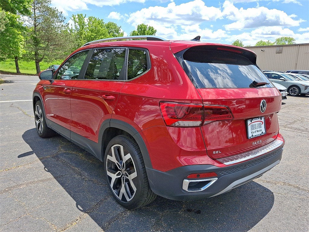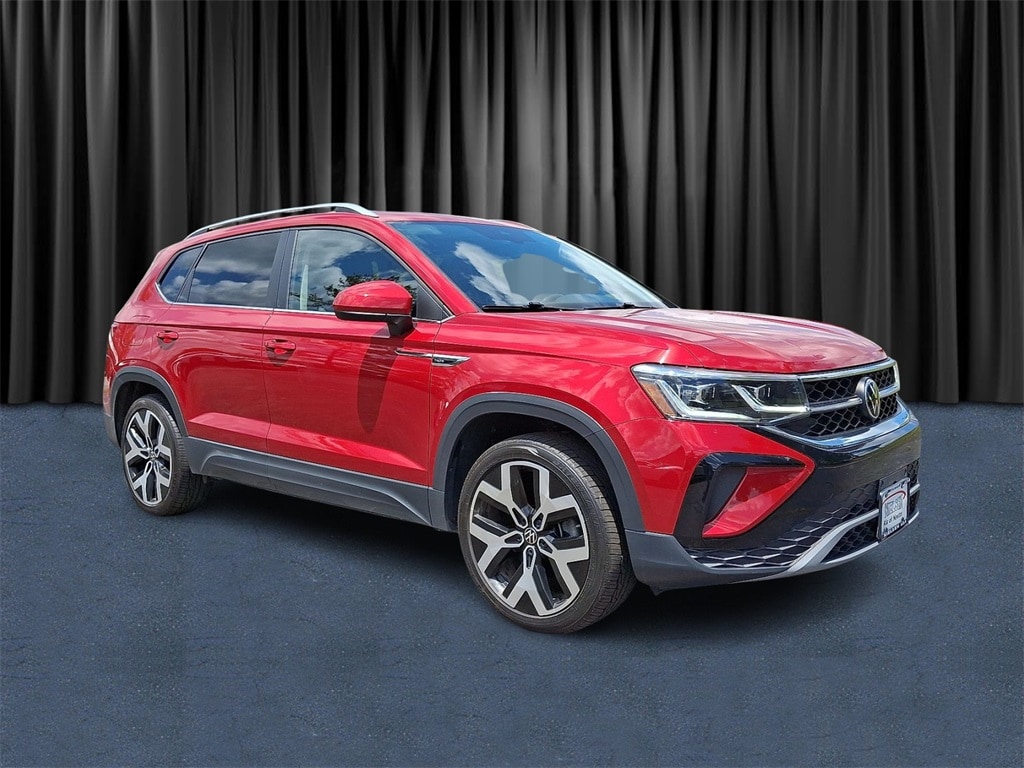Red Metallic 2022 Volkswagen Taos 1.5T SEL AWD 7-Speed DSG Automatic with Tiptronic 1.5L I4 Turbocharged DOHC 16V LEV3-SULEV30 158hp