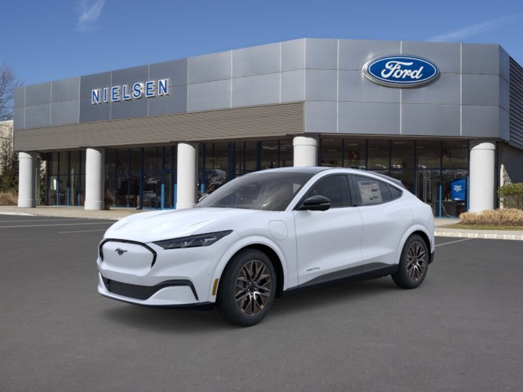 Experience the future of driving with this new 2025 Ford Mustang Mach-E Premium AWD, finished in stunning white with only 1 mile on the odometer. Powered by a robust 346hp electric motor and 88kWh usable battery, you'll enjoy exhilarating performance and up to 150kW DC fast charging for ultimate convenience. The Premium trim is loaded: enjoy a panoramic fixed-glass roof, heated and ventilated ActiveX leatherette seats, B&O Sound System by Bang & Olufsen, SYNC 4A with a 15.5-inch touchscreen, Apple CarPlay/Android Auto, and wireless device charging. Advanced safety features include Ford Co-Pilot360 with BLIS (Blind Spot Information System), lane keeping, adaptive cruise control, 360-degree camera, and automatic emergency braking. With all-wheel drive, selectable drive modes, and 19-inch alloy wheels, every trip is both dynamic and secure. The Mach-E's sleek design is complemented by a power liftgate, deep-tinted glass, and bronze-accented wheels. Covered by Ford's comprehensive warranty, this Mustang Mach-E Premium is ready for your next adventure. Contact us today to schedule your test drive!
